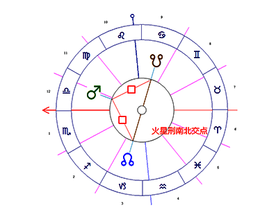 当火星与上升点成四分相时(90度),同时也会与下降点呈四分相,它们属于是一组困难相位。